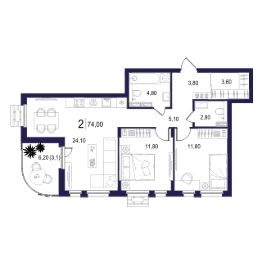 2-к квартира Показать на карте