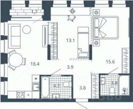 2-к квартира Показать на карте