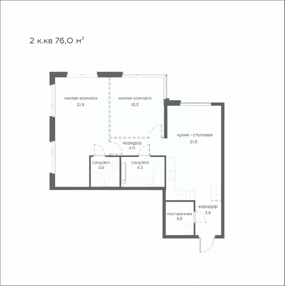 76 м² · Этаж 2 из 21