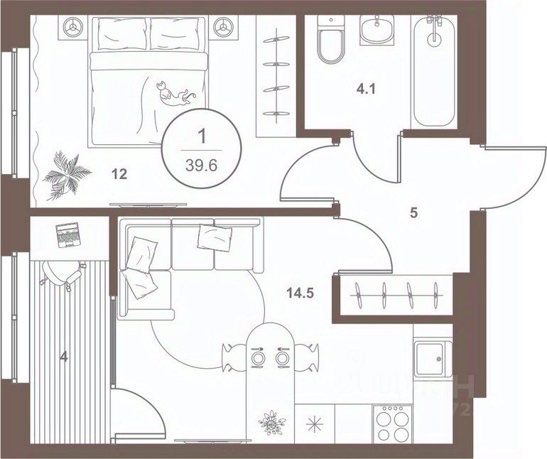 40 м² · Этаж 12 из 16