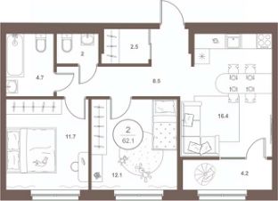 2-к квартира Показать на карте