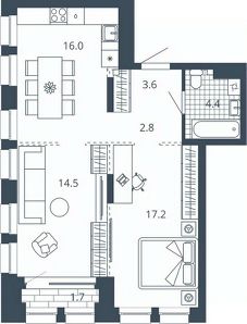2-к квартира Показать на карте