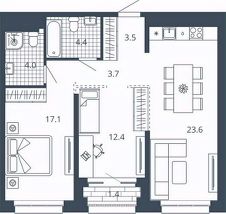 2-к квартира Показать на карте