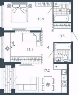 2-к квартира Показать на карте