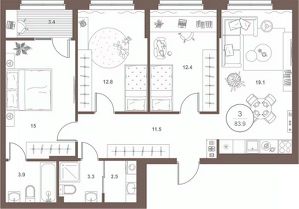 3-к квартира Показать на карте