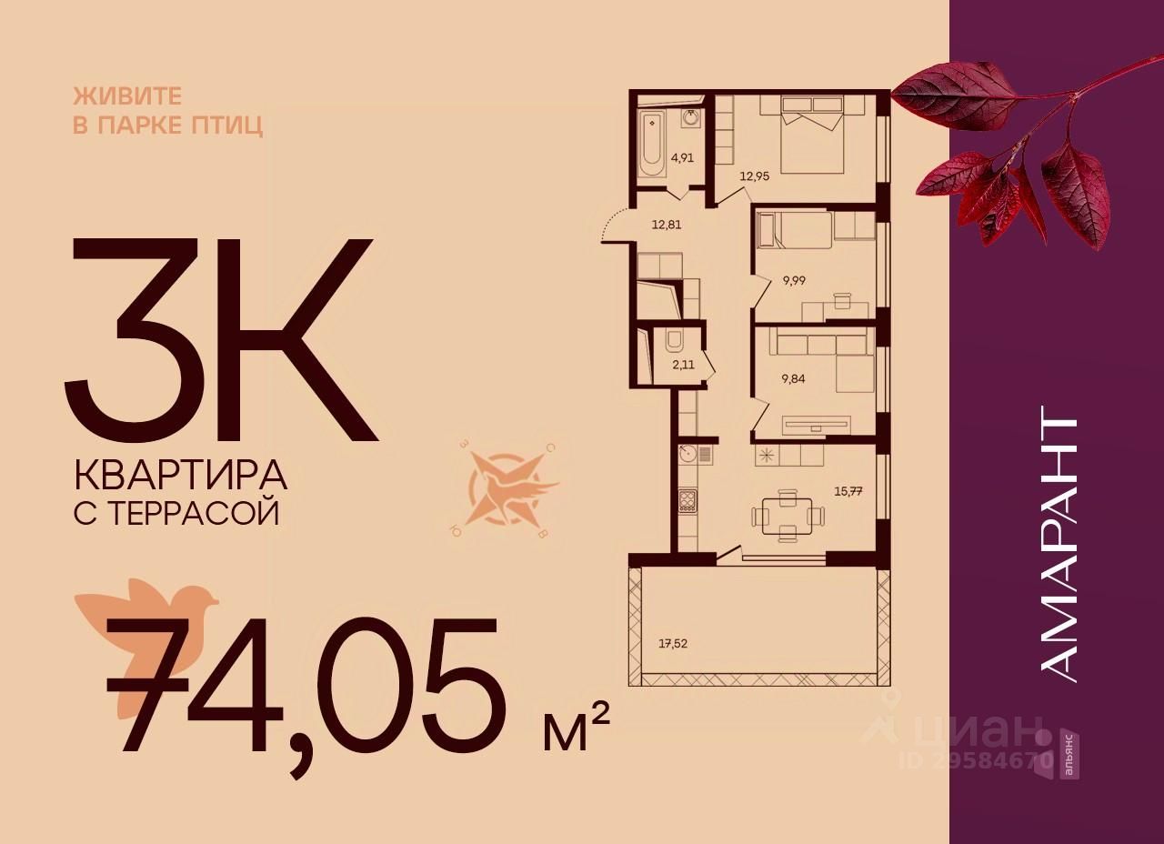 74 м² · Этаж 11 из 17