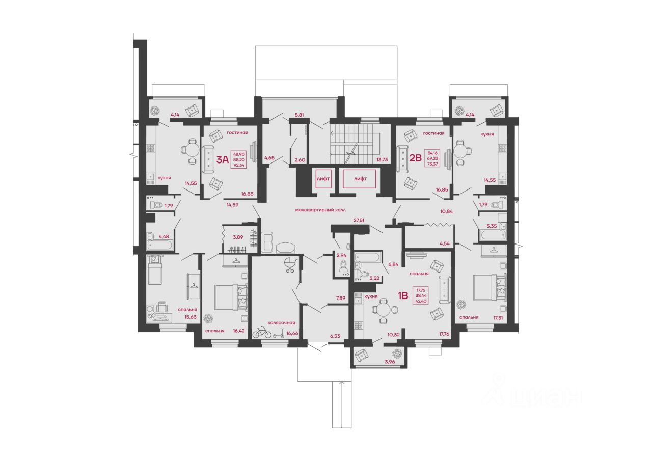 27 м² · Этаж 2 из 17