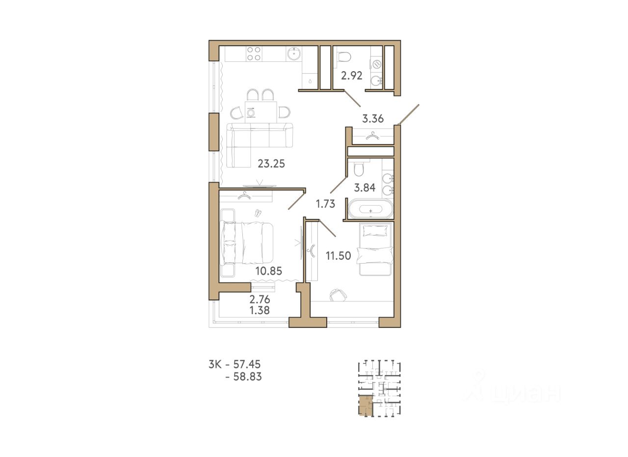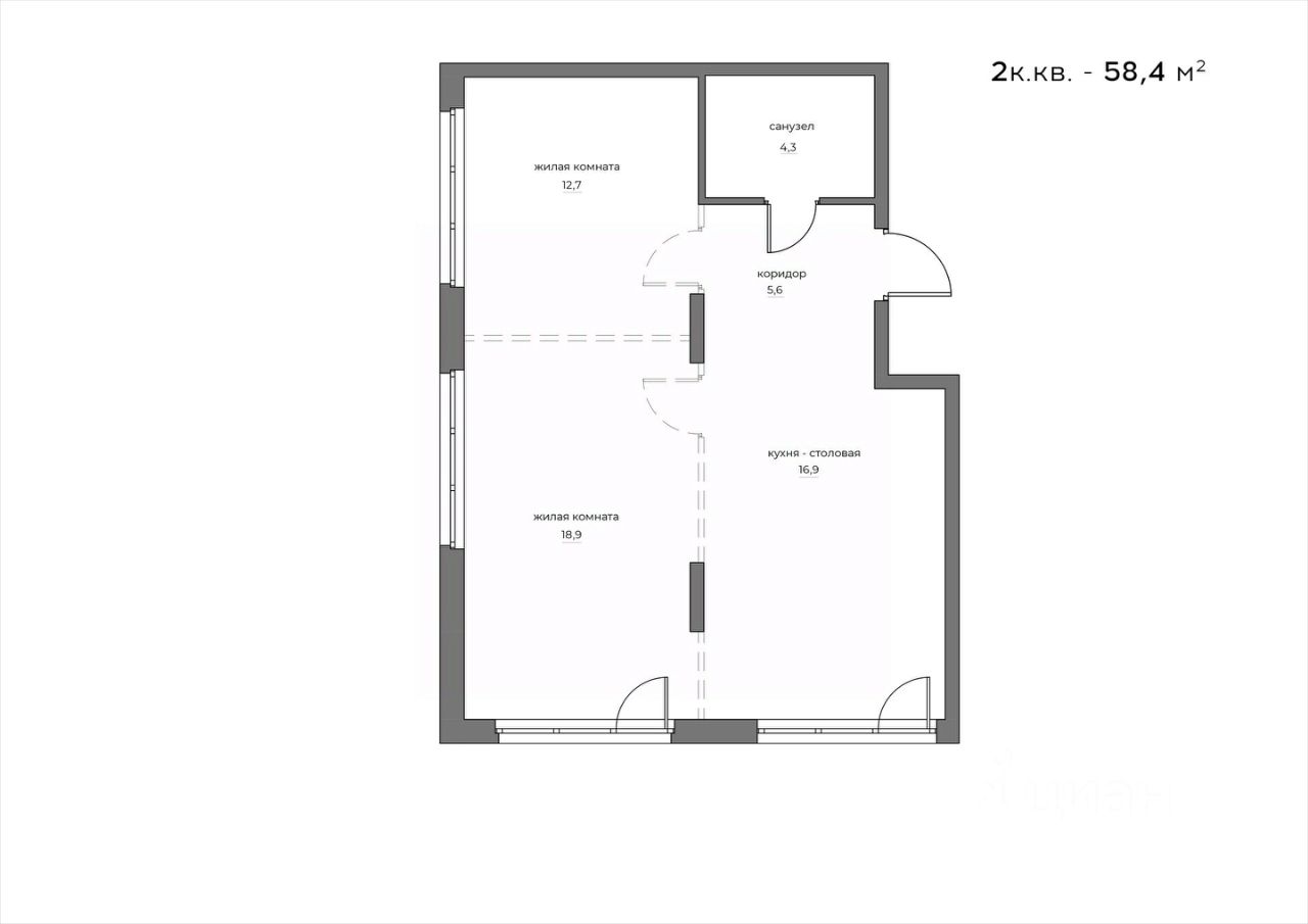58 м² · Этаж 11 из 18