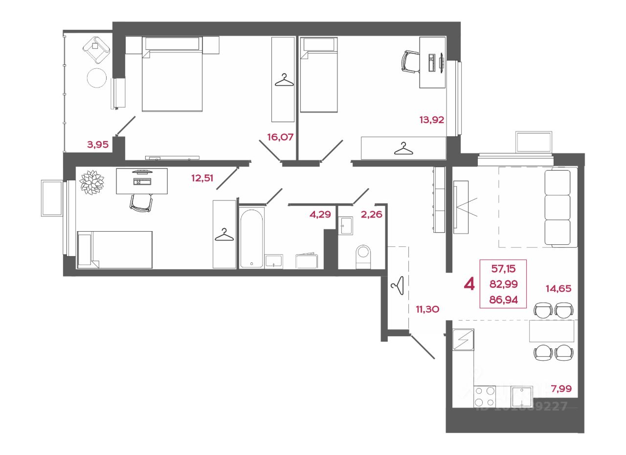 57 м² · Этаж 15 из 17