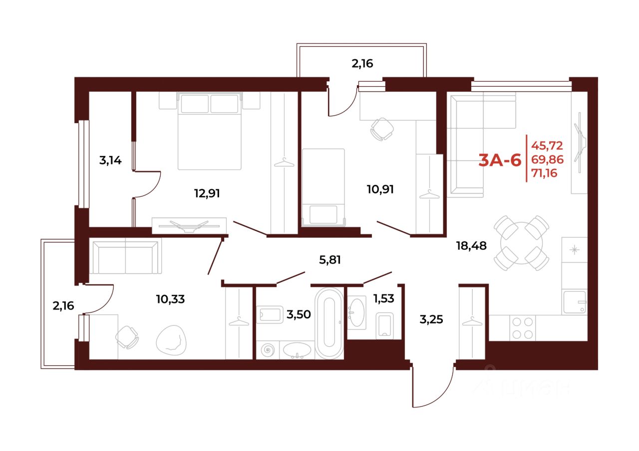 71 м² · Этаж 9 из 18