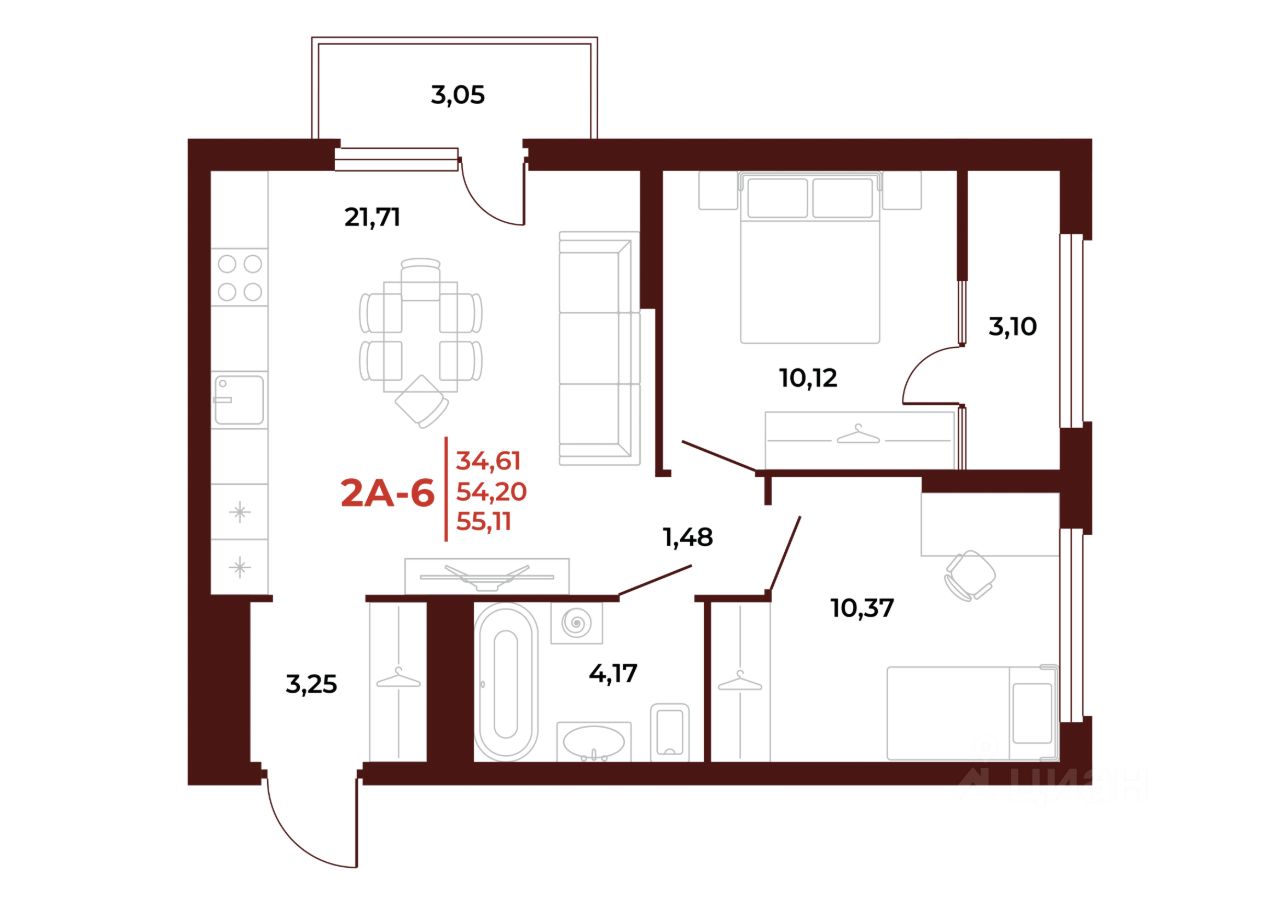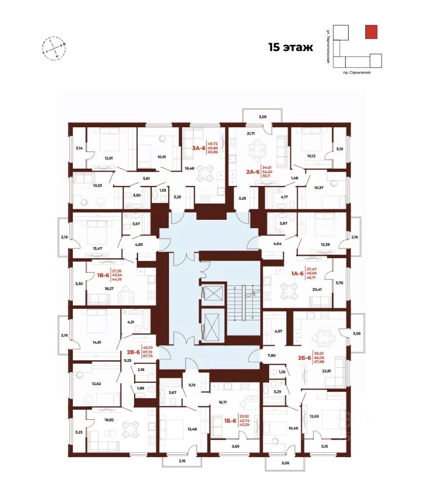 55 м² · Этаж 15 из 18