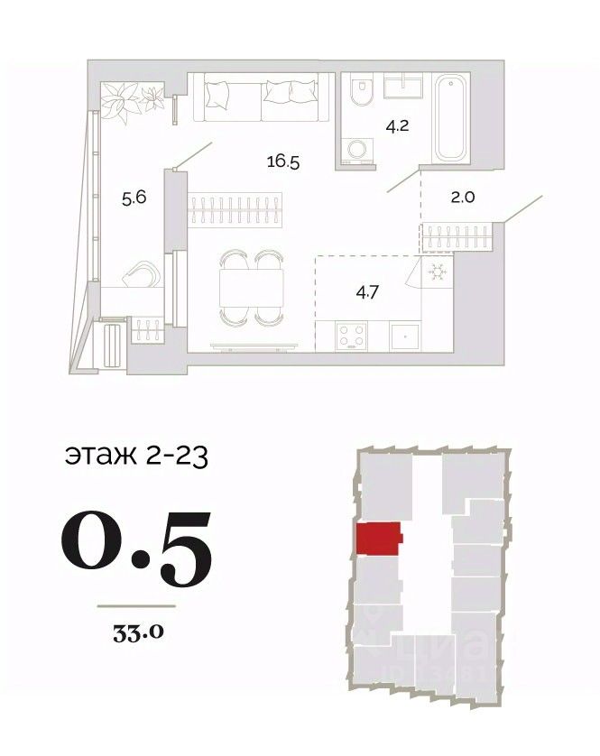 33 м² · Этаж 16 из 24