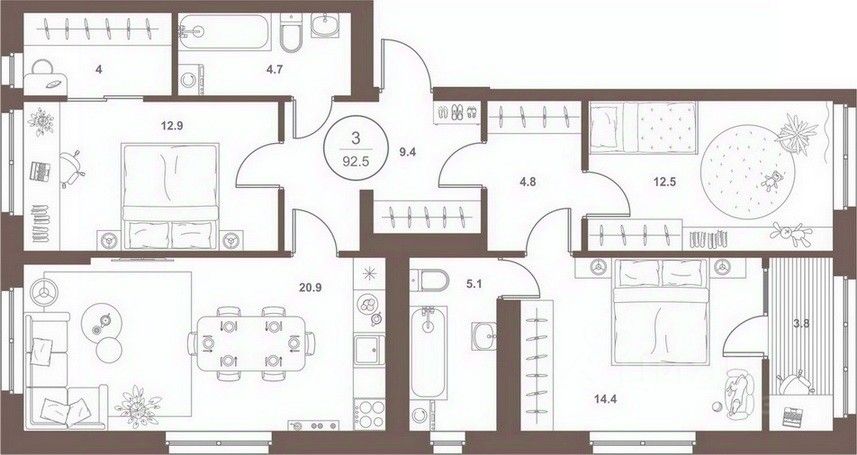 Трехкомнатные