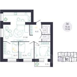 3-к, Колышлейская, 7 Показать на карте