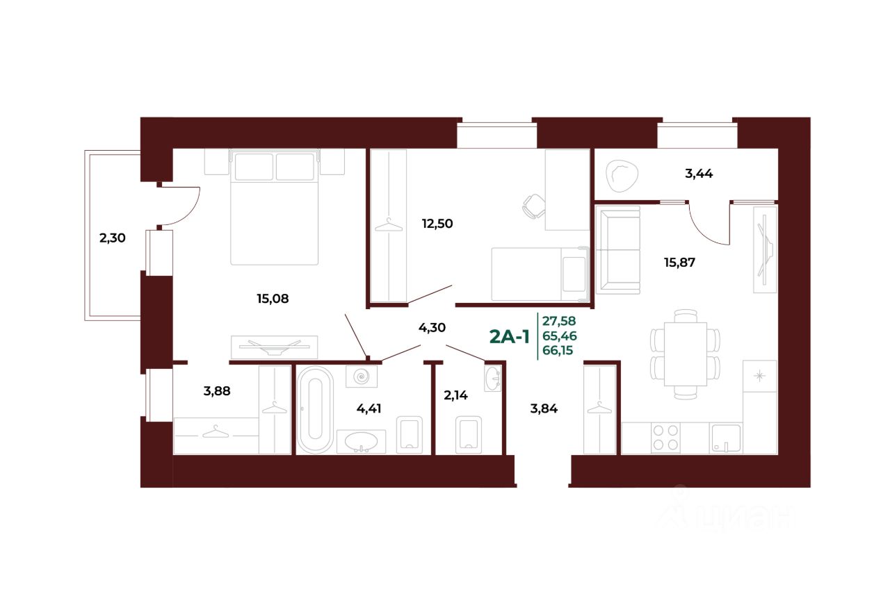 65 м² · Этаж 2 из 17