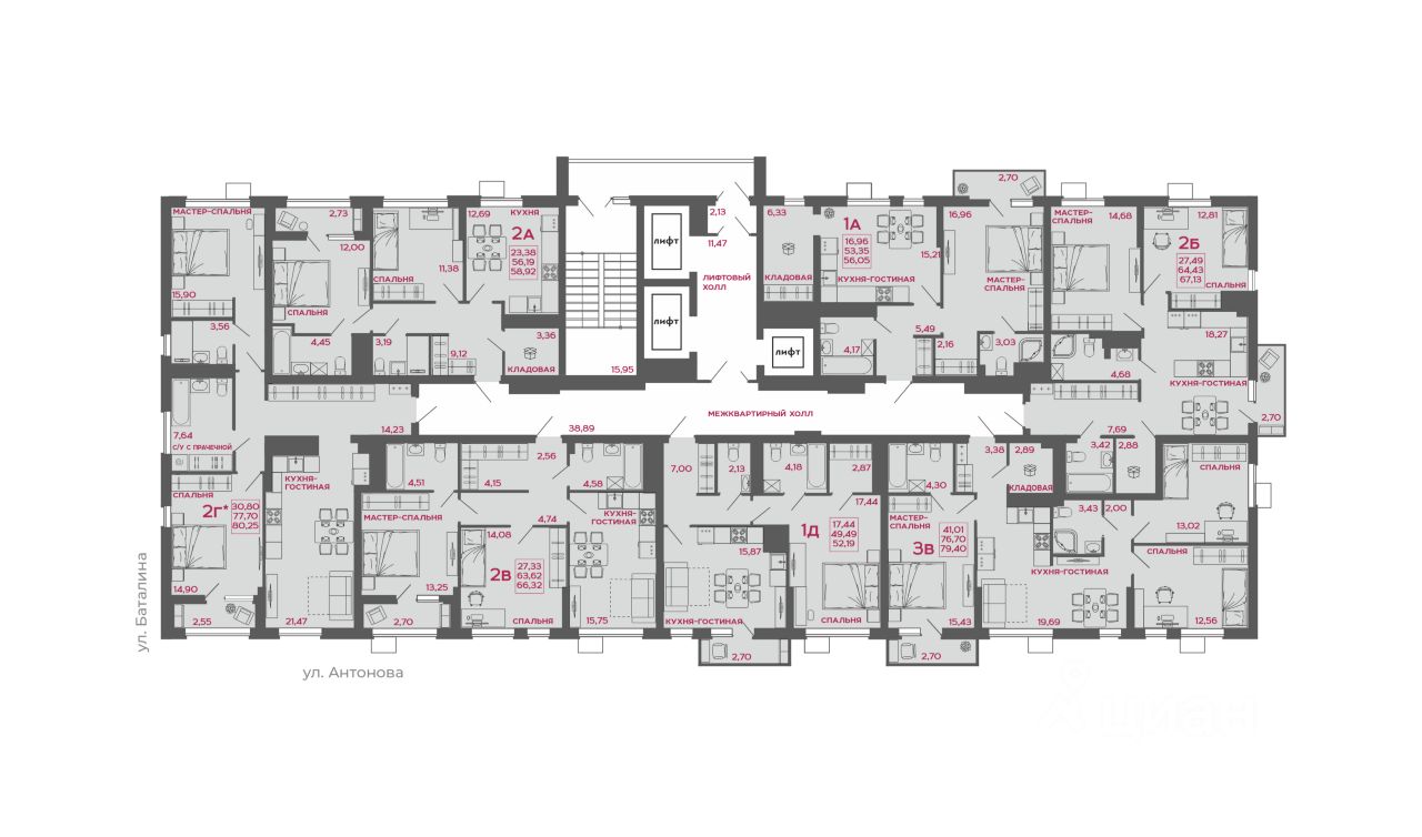 56 м² · Этаж 19 из 22