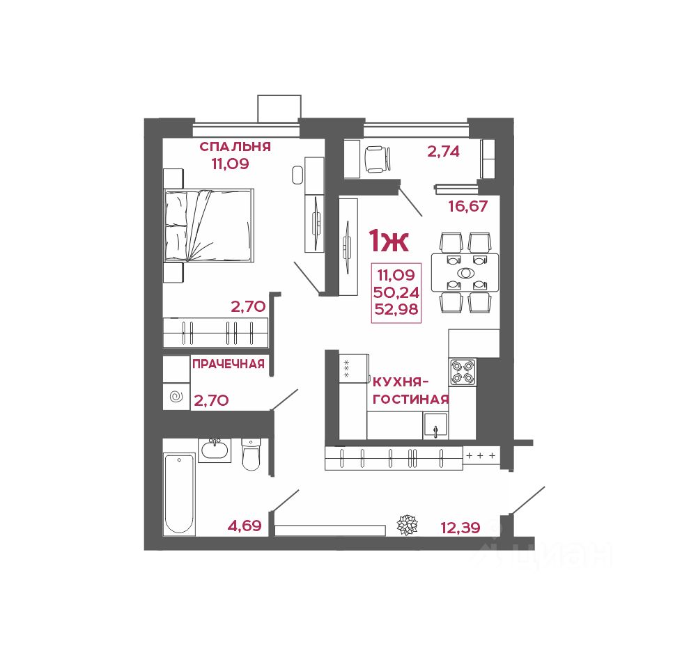 52 м² · Этаж 9 из 22