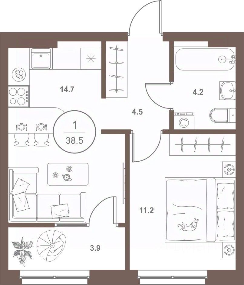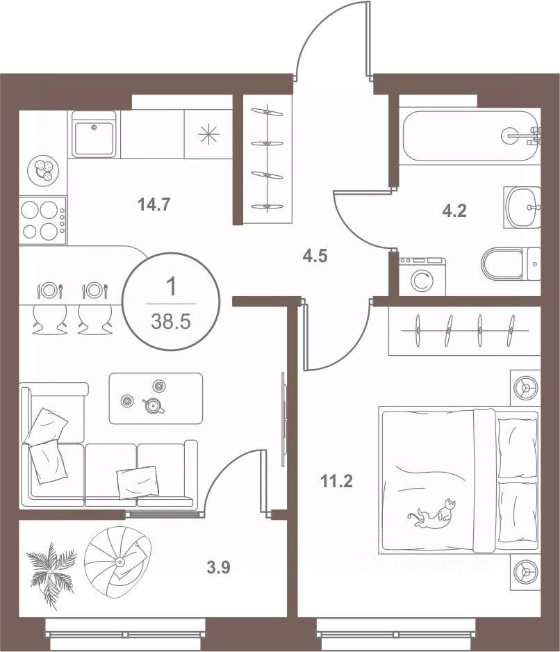 38 м² · Этаж 11 из 16
