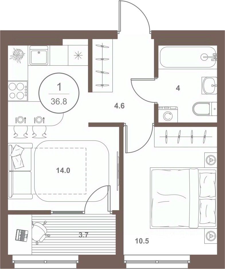 36 м² · Этаж 12 из 16