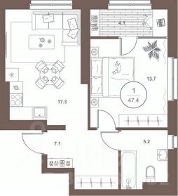 1-к квартира Показать на карте