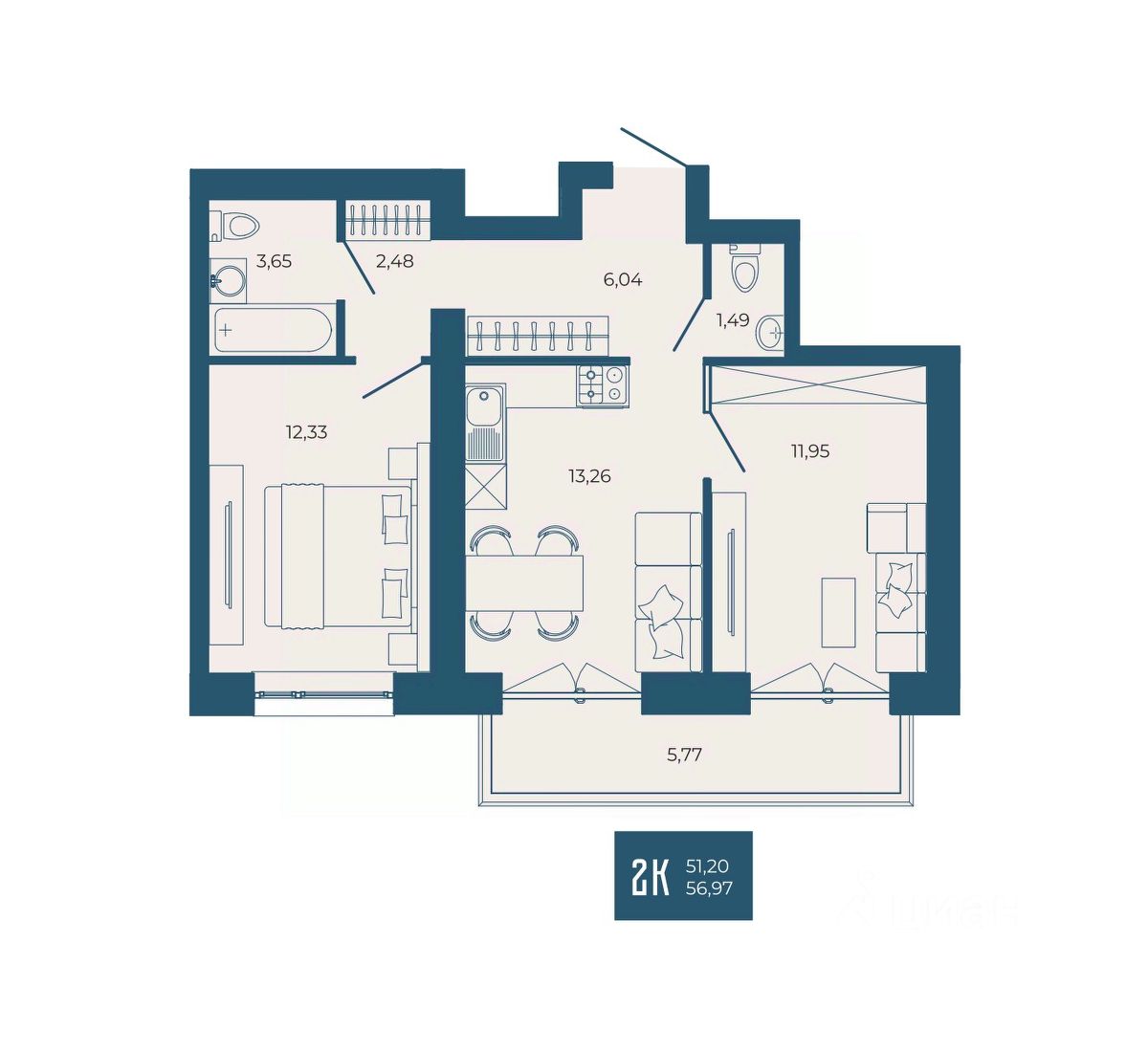 56 м² · Этаж 12 из 17