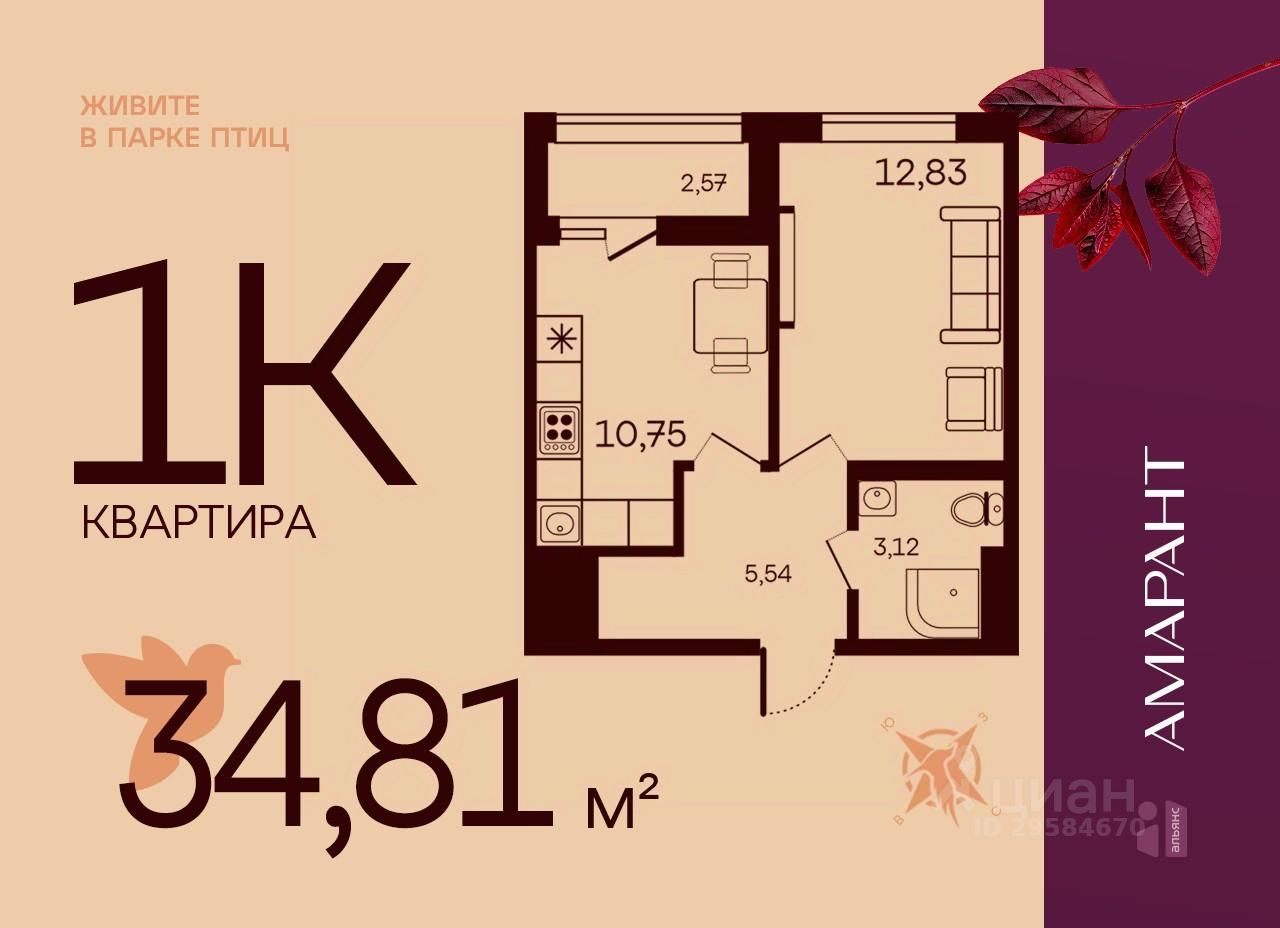34 м² · Этаж 12 из 17