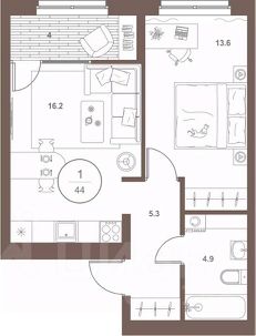 44 м2