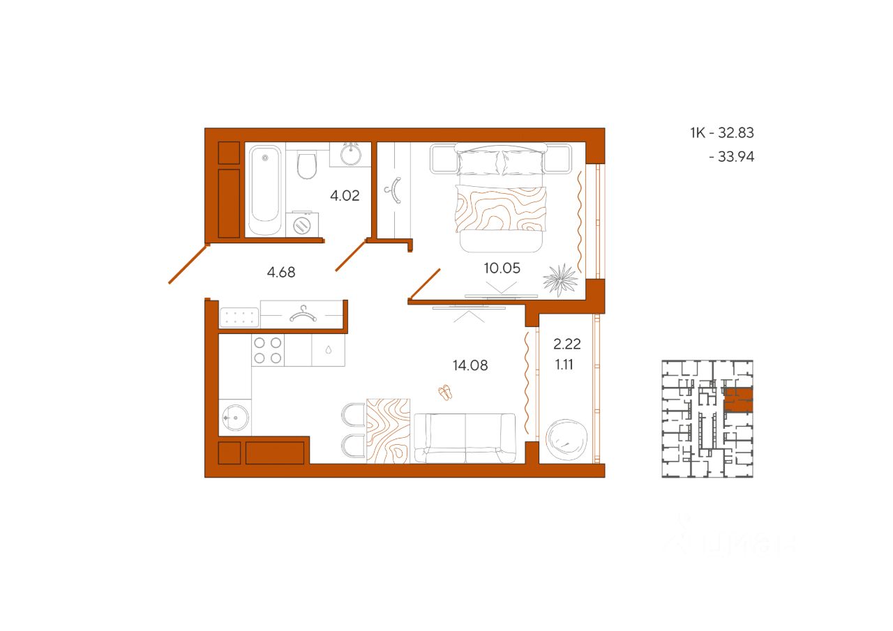 33 м² · Этаж 9 из 18