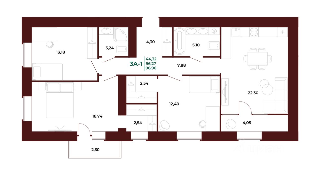 44 м² · Этаж 3 из 18