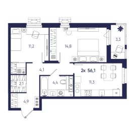 Евротрехкомнатная Квартира - ''распашонка'' 56,8м2. Современная планировка евро-формата, которая позволит воплотить Ваши мечты и сделать квартиру уникальной! Сердцем данной квартиры является просторная кухня гостиная 21 кв.м. и располагает к тому, чтобы вся семья собиралась по вечерам в одном месте. Изолированными остаются только спальни. Это отличное решение для семей с детьми. Если разместить игровую зону в гостиной, можно следить за ребенком, не выходя за пределы кухни. А если дети уже взрослые, большим плюсом является удалённость родительской комнаты от детской. Отдельная гардеробная комната расположенная при входе это рациональный способ решить вопрос компактного размещения вещей. Она обеспечивает сохранность предметов одежды и обуви, когда они долгое время не востребованы, а также позволяет содержать в идеальном порядке вещи, которые используются ежедневно. Окна у данной квартиры выходят на противоположные стороны дома: на дворик и улицу. Наблюдение за восходом солнца придаст дополнительные силы, а вечерний закат успокоит и поможет скоротать вечер. У данной планировки комнаты будут в течение дня равномерно освещены и хорошо проветрены. Квартира, куда хочется возвращаться, отдыхать и проводить время с родными и близкими! Этапы сделки:Одобрение ипотеки (при необходимости)Бронирование квартирыПодготовка ДДУСогласование с банком ДДУ (при необходимости)Открытие счета эскроуПодписание КД (при необходимости)Подписание ДДУПодписание соглашения на проведение отделочных работРегистрация ДДУ в РосреестреОплатаПолучение ключей*ДДУ-договор долевого участия*КД-кредитный договоркв 107
