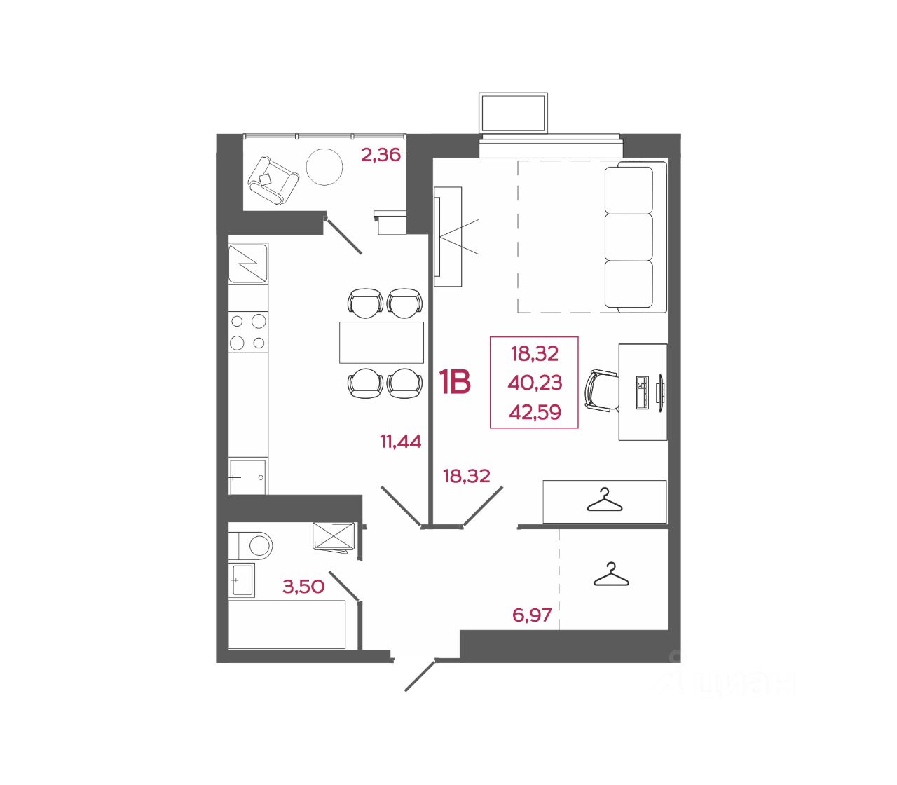42 м² · Этаж 9 из 17