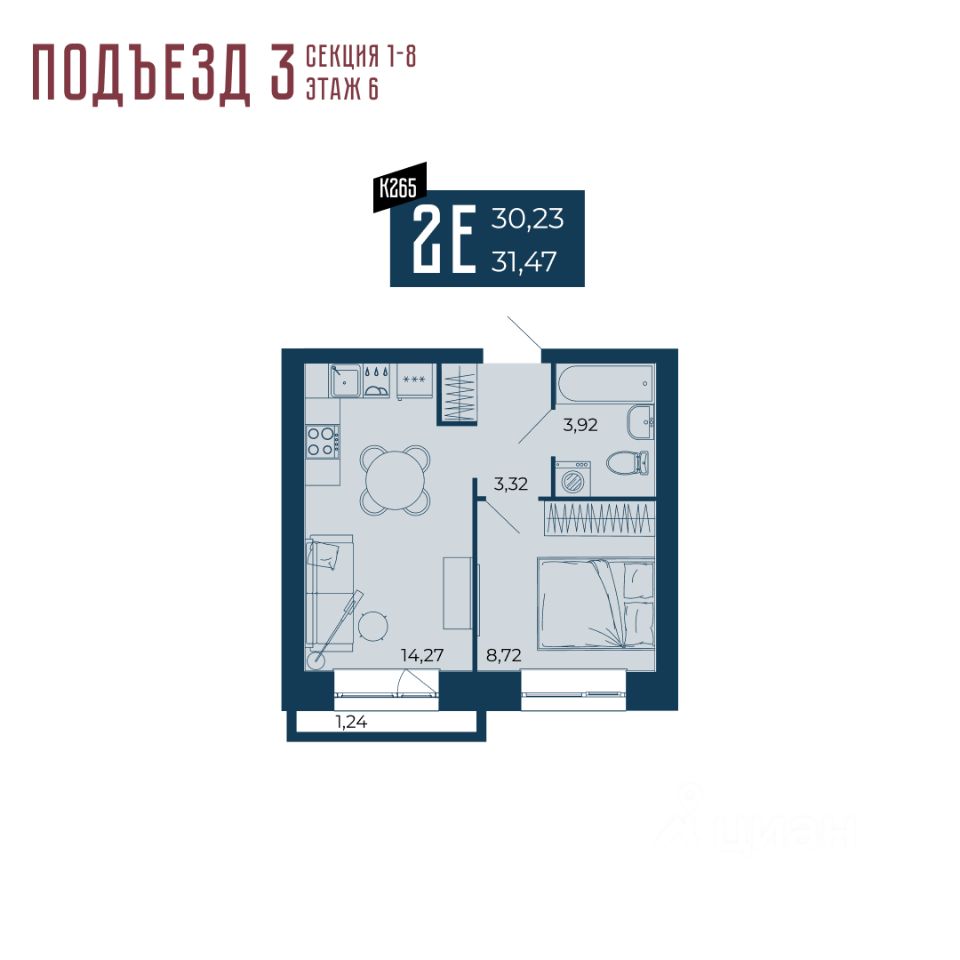 30 м² · Этаж 6 из 15