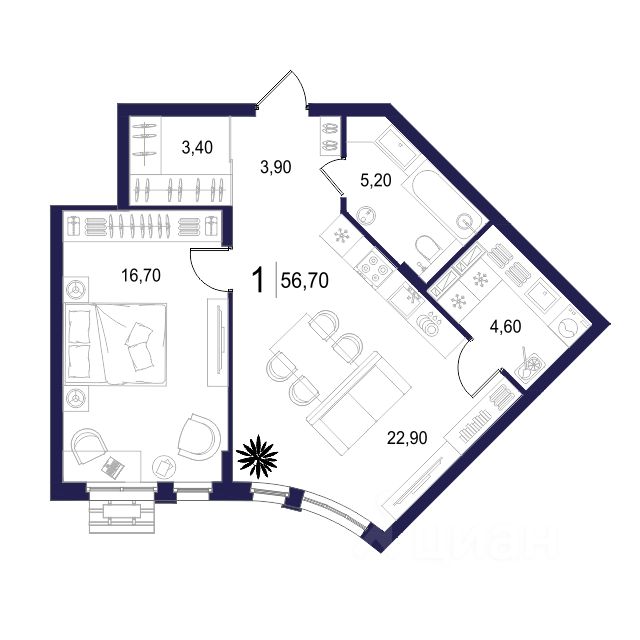 56 м² · Этаж 4 из 16