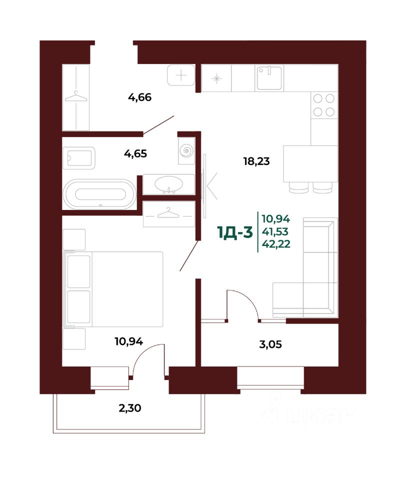 42 м² · Этаж 10 из 17