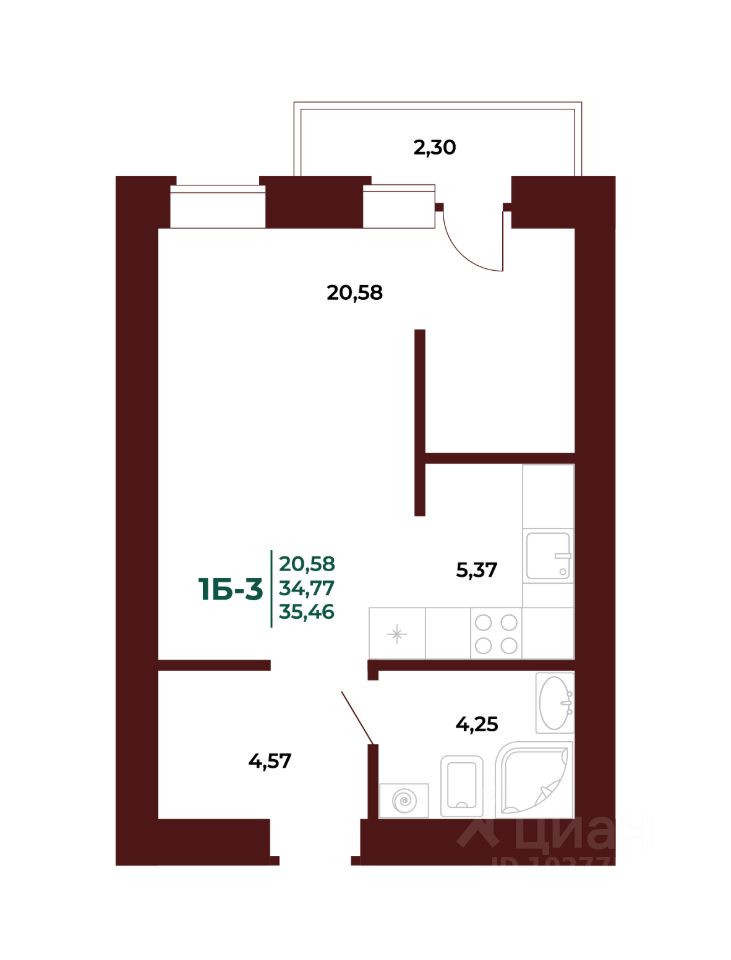 35 м² · Этаж 9 из 17