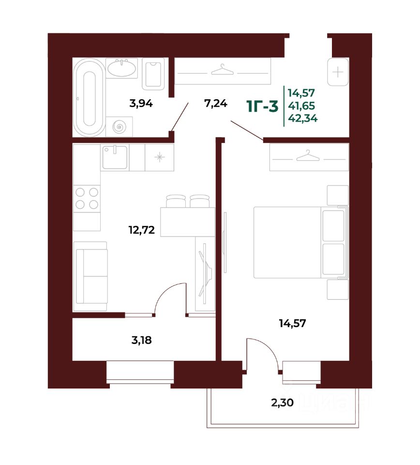42 м² · Этаж 12 из 17