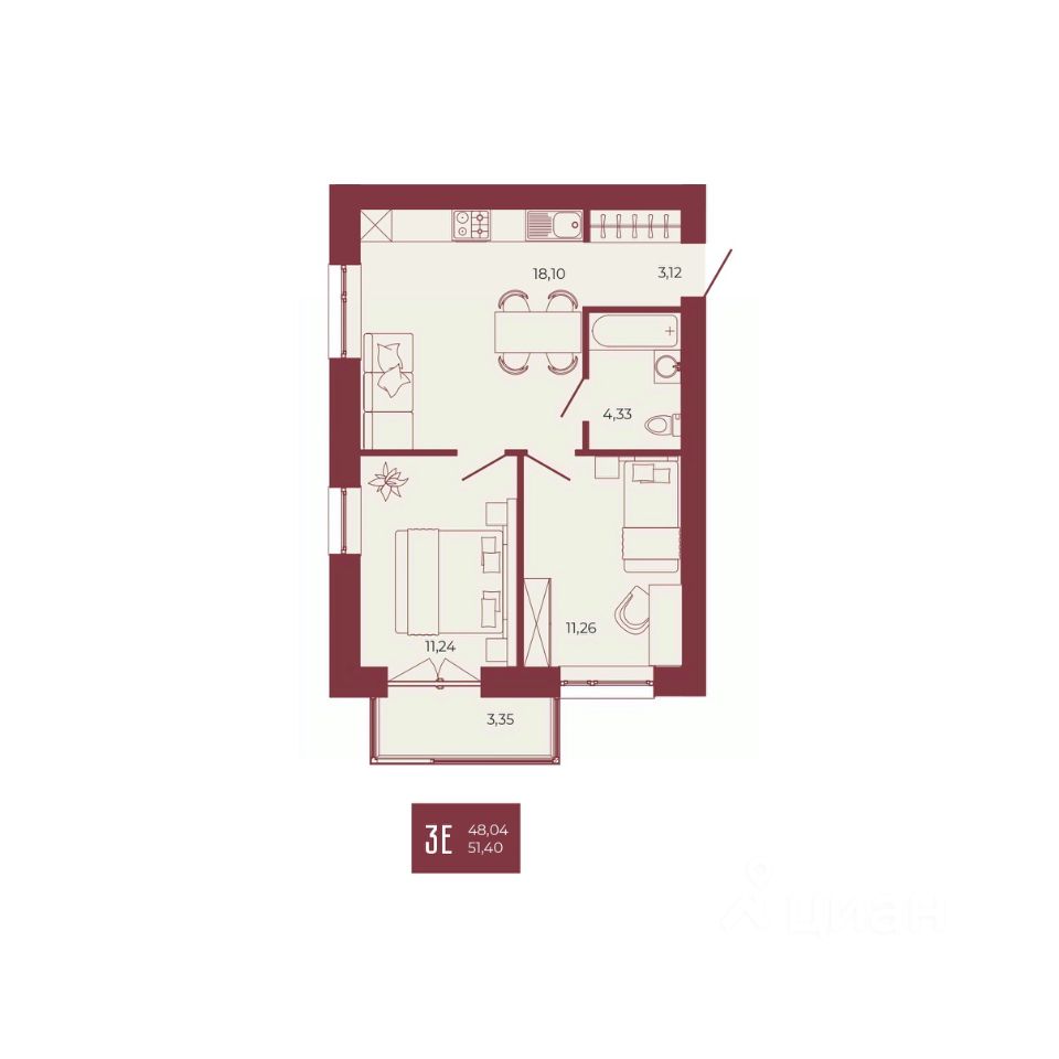 51 м² · Этаж 4 из 17