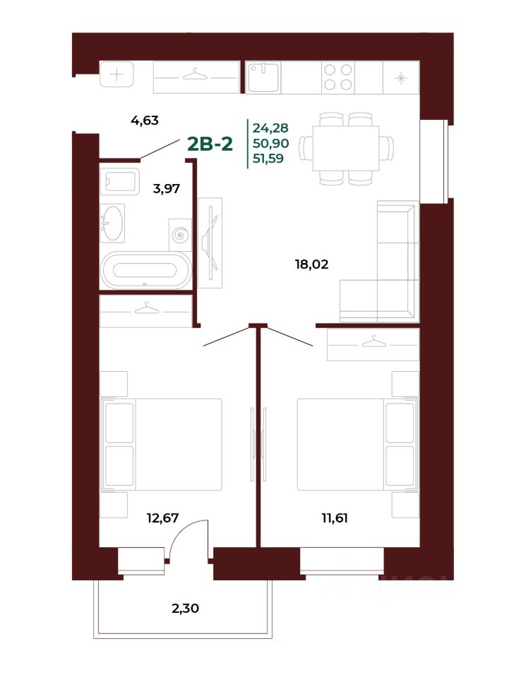 42 м² · Этаж 2 из 24