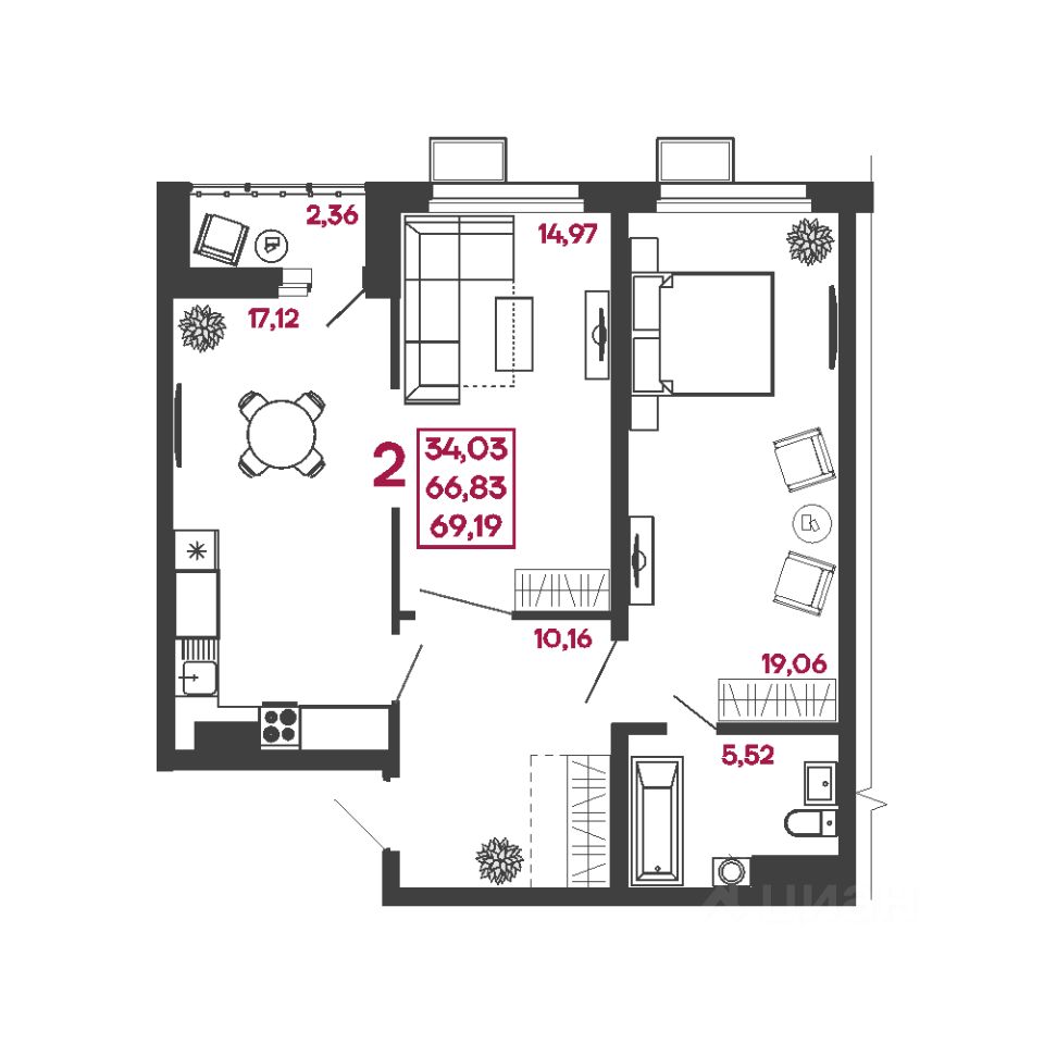 69 м² · Этаж 1 из 17
