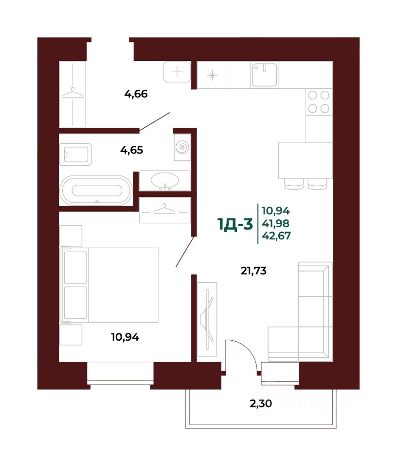 42 м² · Этаж 15 из 17