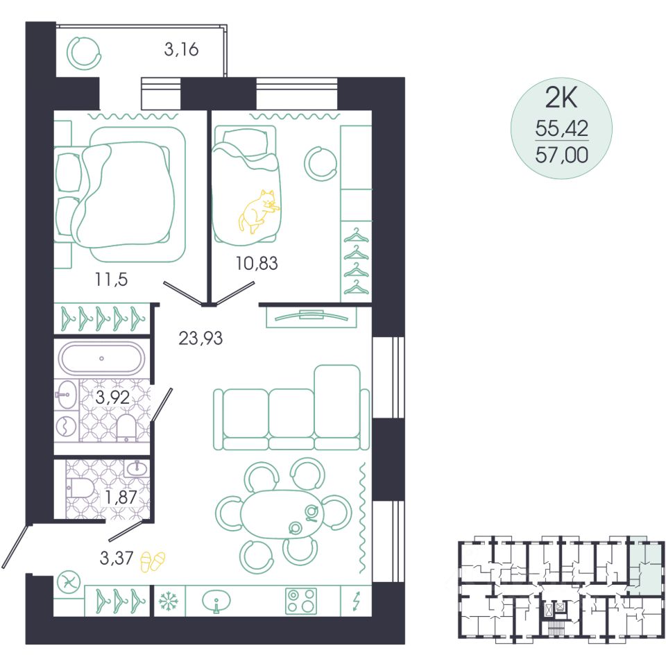 57 м² · Этаж 8 из 14