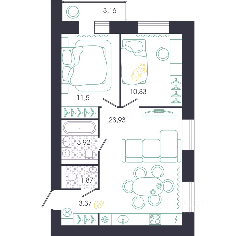 59 м² · Этаж 15 из 16