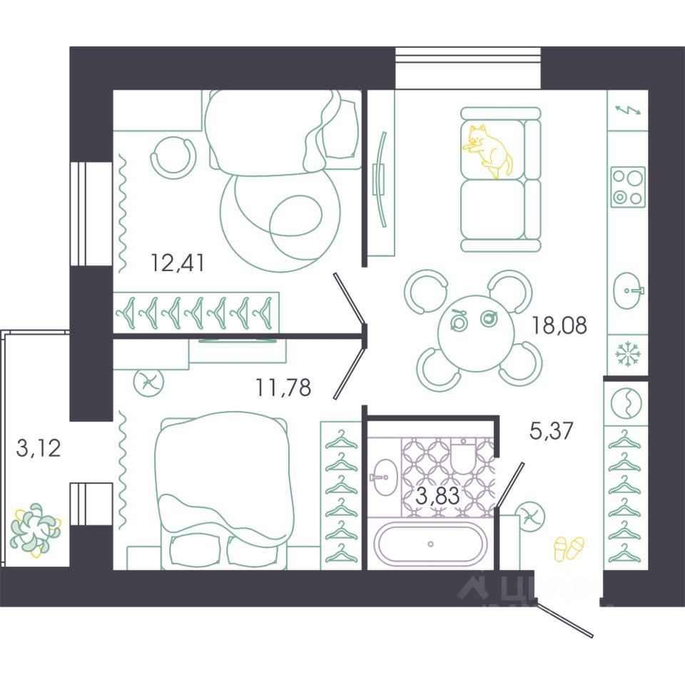 41 м² · Этаж 12 из 16