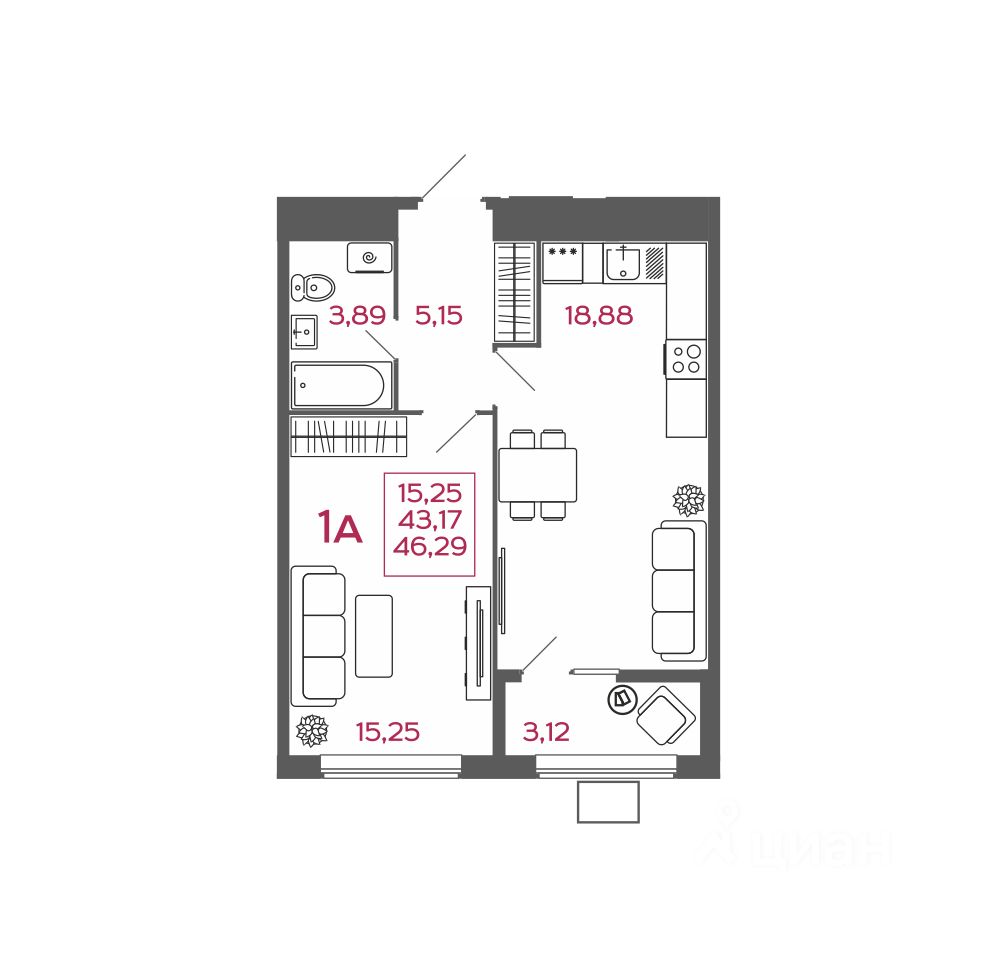 46 м² · Этаж 9 из 17