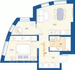 2-к квартира Показать на карте