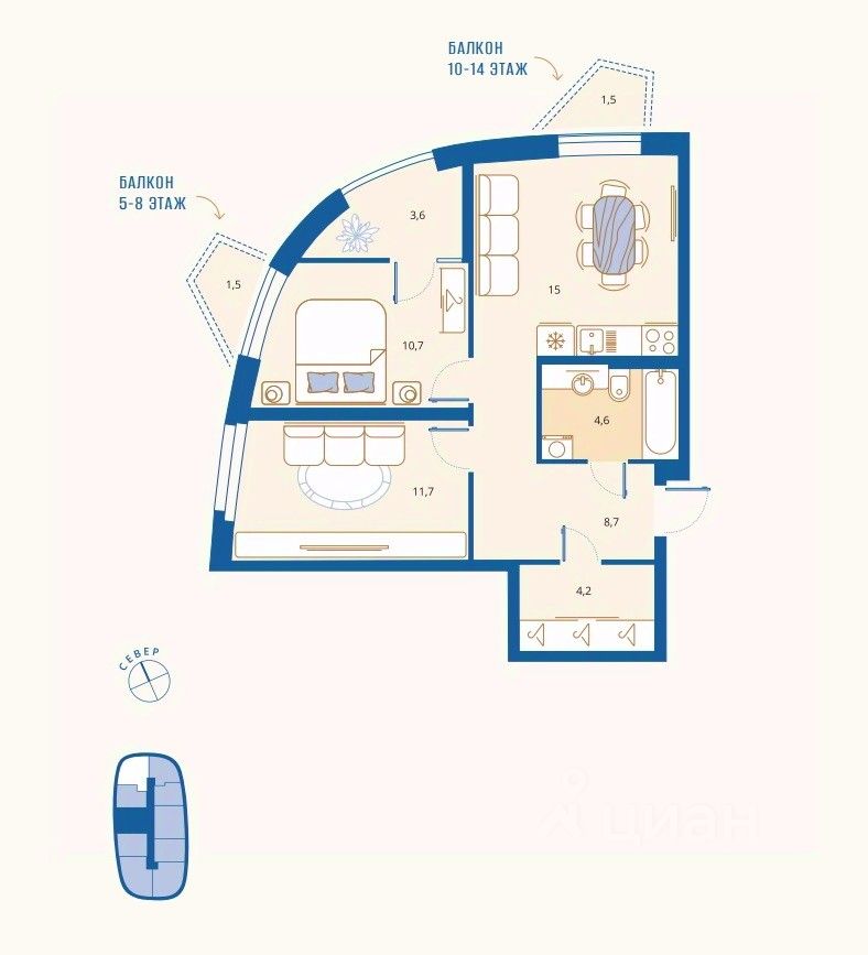 59 м² · Этаж 7 из 16