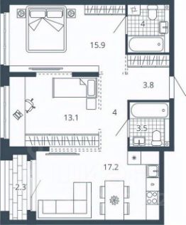 2-к квартира Показать на карте