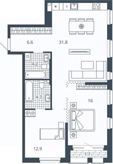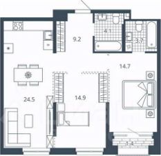 2-к квартира Показать на карте