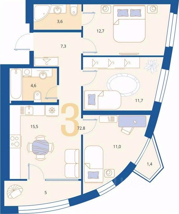 Трехкомнатные