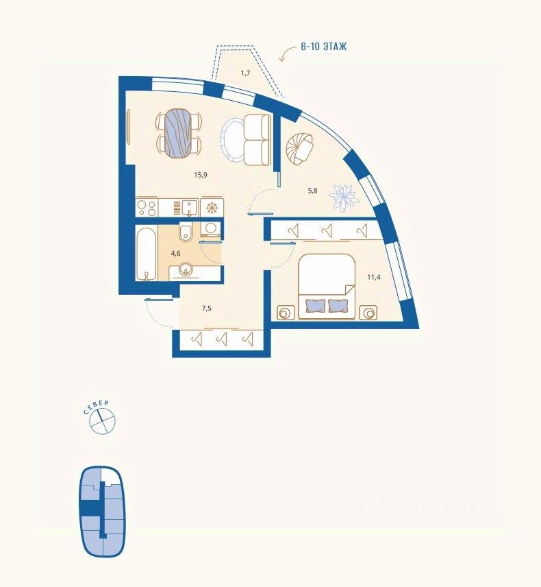 38 м² · Этаж 6 из 17